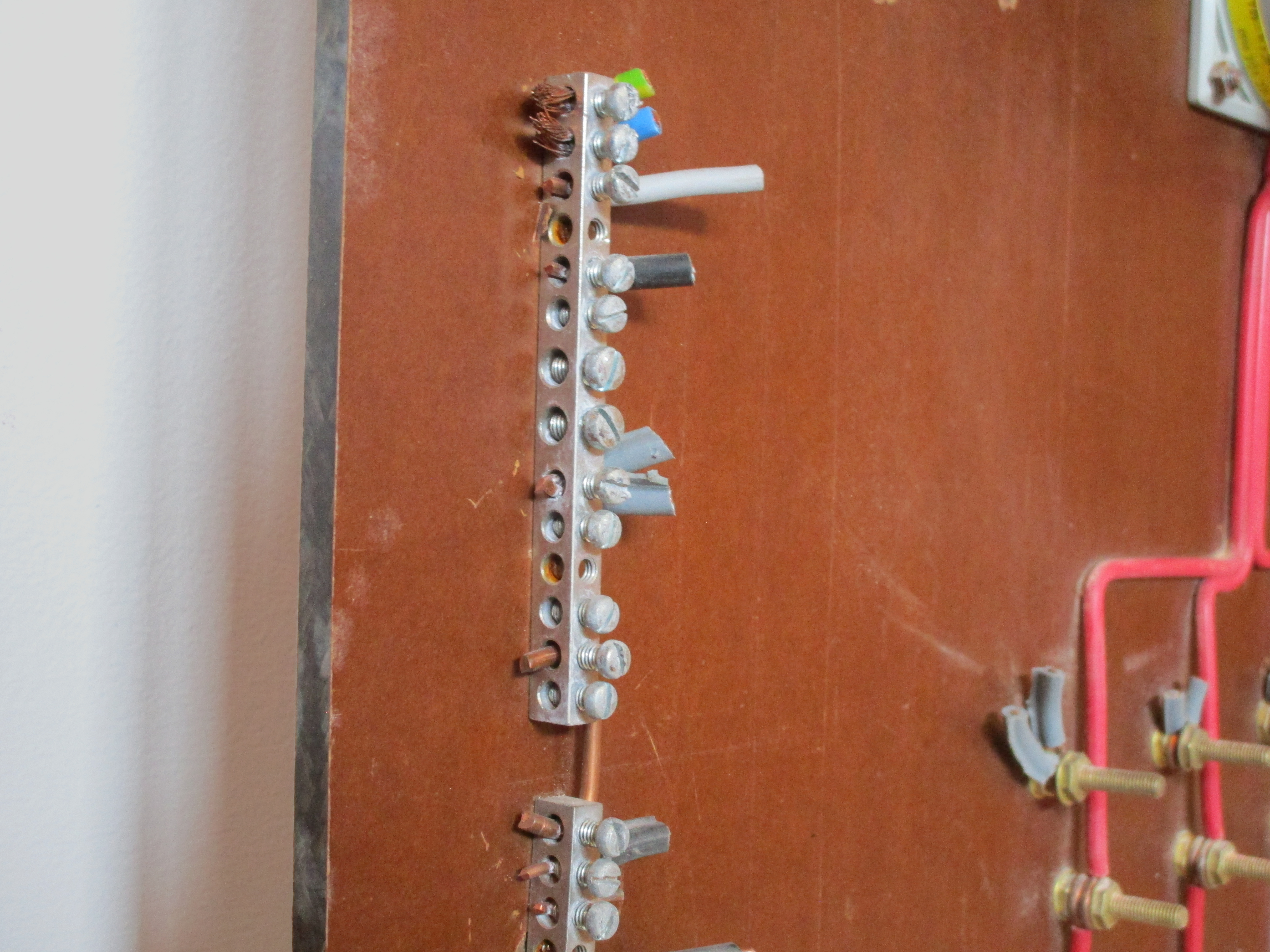 length of wire. There's no separate earth bar: most circuits in this house either had no earth whatsoever or