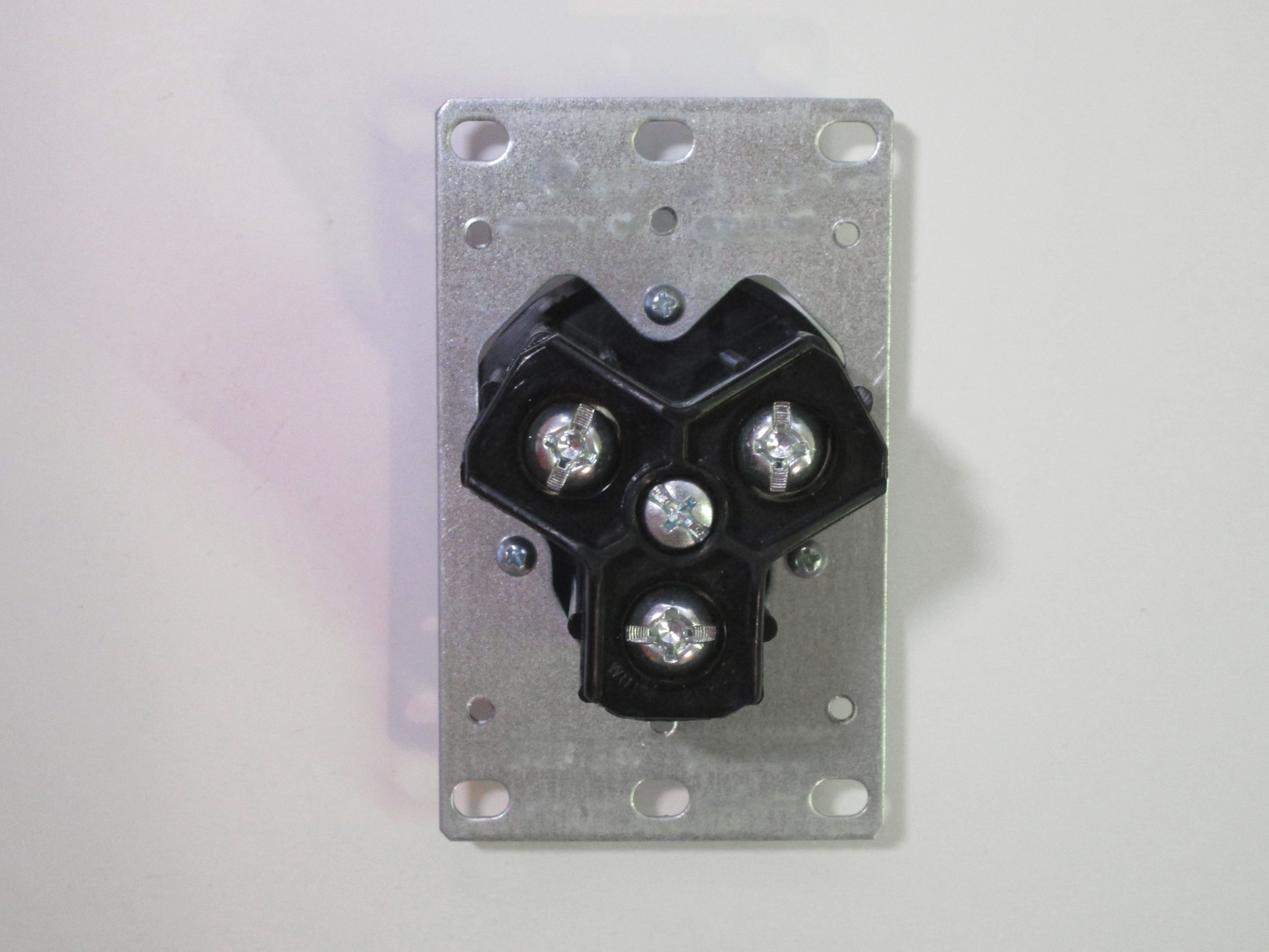 As is typical with Cooper sockets, the metal frame has two cutouts to serve as a crude wire stripper. The terminals are of the usual screw type seen on regular American outlets; the line ones are coloured gold, while the earth one is coloured green.