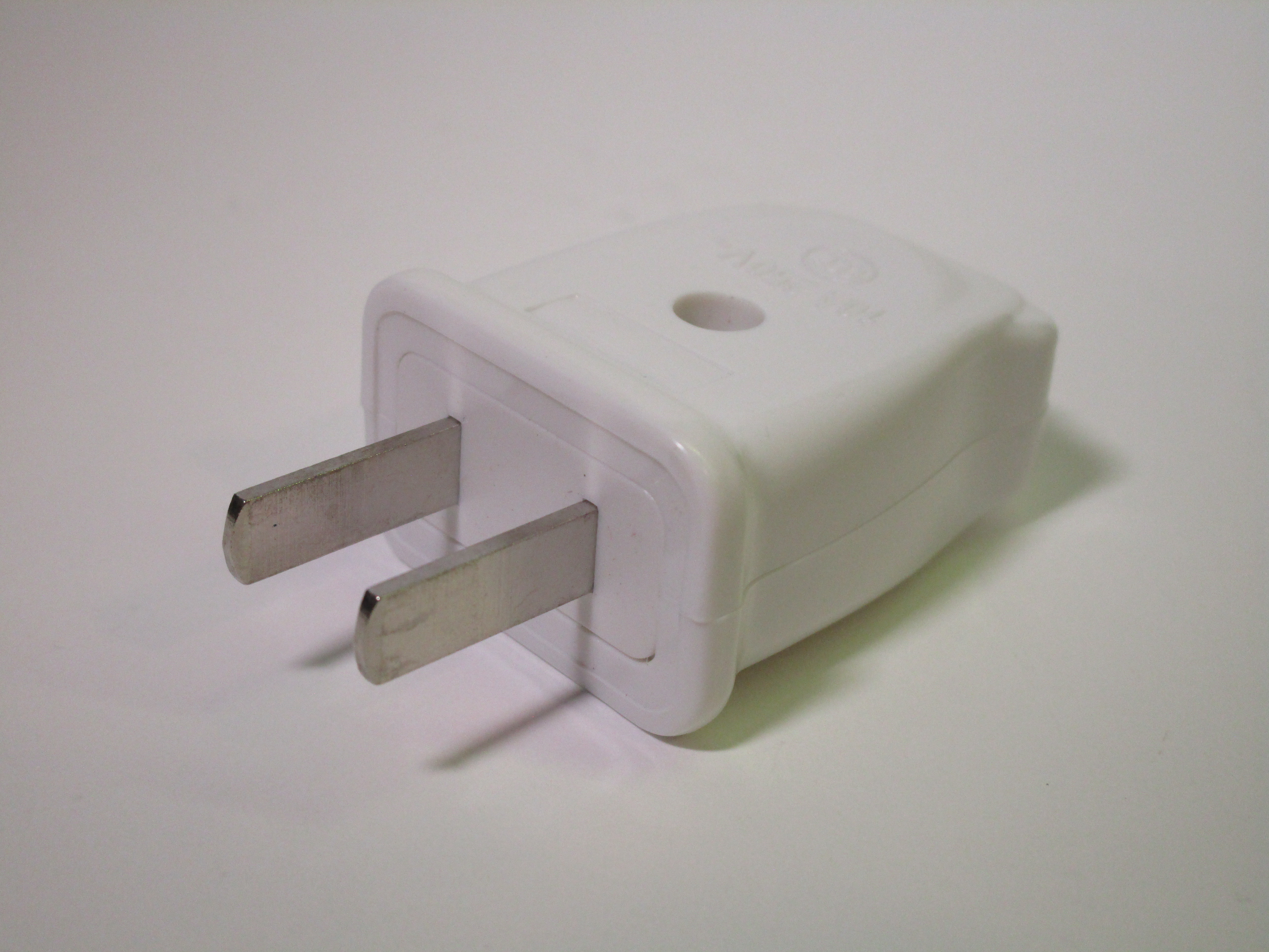 North American-style plugs with two flat prongs are typically found on non-earthed devices; plugs with two round pins such as Europlugs or similar are less common and not always compatible with all sockets. Compared to traditional American plugs, these have two main differences: they usually are entirely solid, without the two small holes normally found on American two-prong plugs, and they're always non-polarised. In fact, sockets often only accept non-polarised plugs.