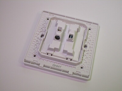 Non-earthed power sockets are also available: this one from Chint is part of the same model lineup as the one shown earlier, but rather than having one non-earthed and one earthed socket it has two non-earthed ones, of the US-only non-polarised type.