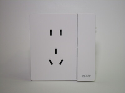 This socket by Chint is virtually identical to the 2- and 3-prong one seen initially, save for the presence of a light switch. The switch is long but very thin, spanning the entire height of the socket, and is positioned on the left hand side.