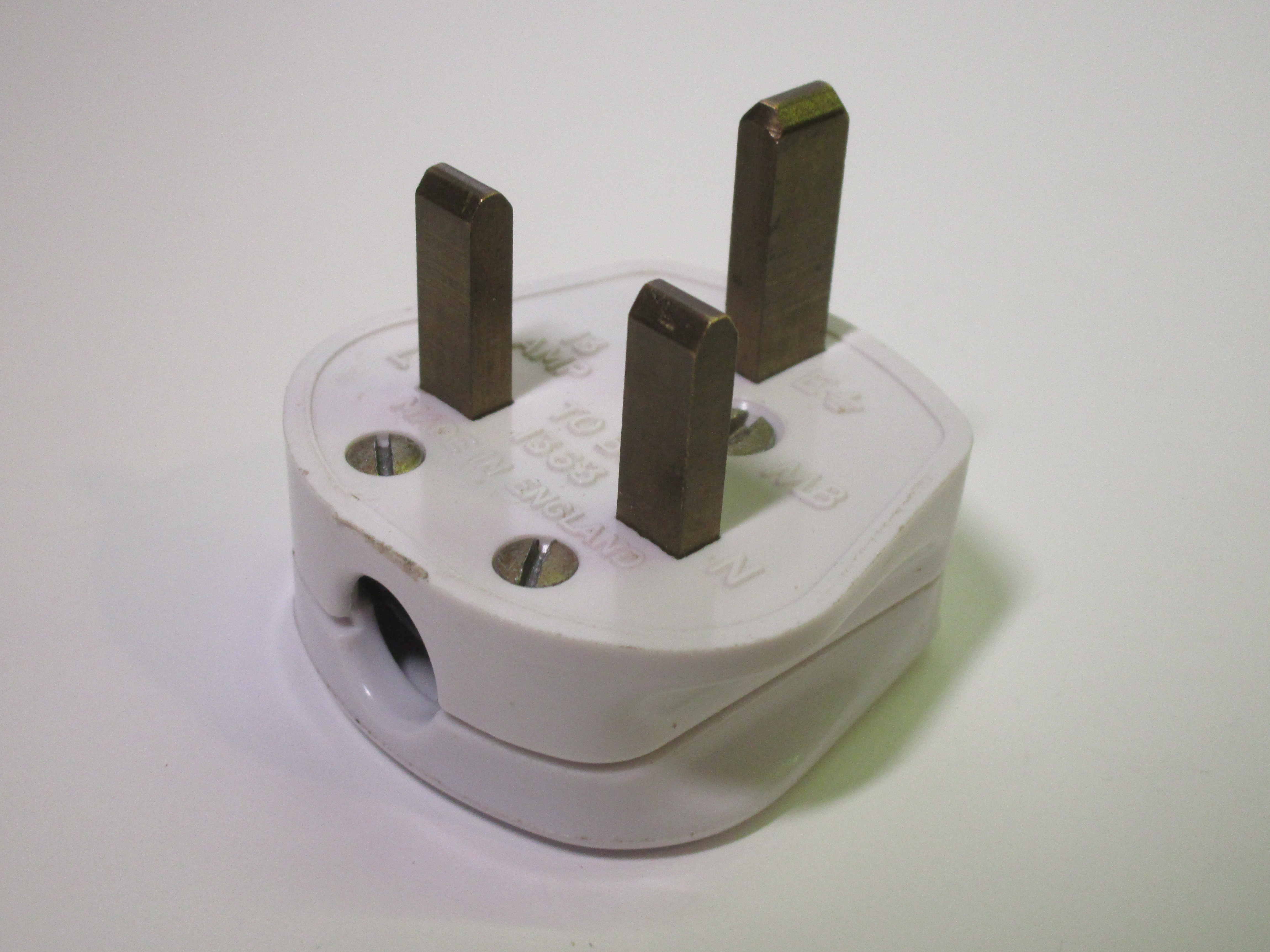 This plug is an example of the common 5A size. A manufacturer name is not present, but it does mention having been built in England. A cord grip is present to secure the cable to the plug, while the pins are split to ensure proper contact with older sockets as their contacts comprised purely of a tube.