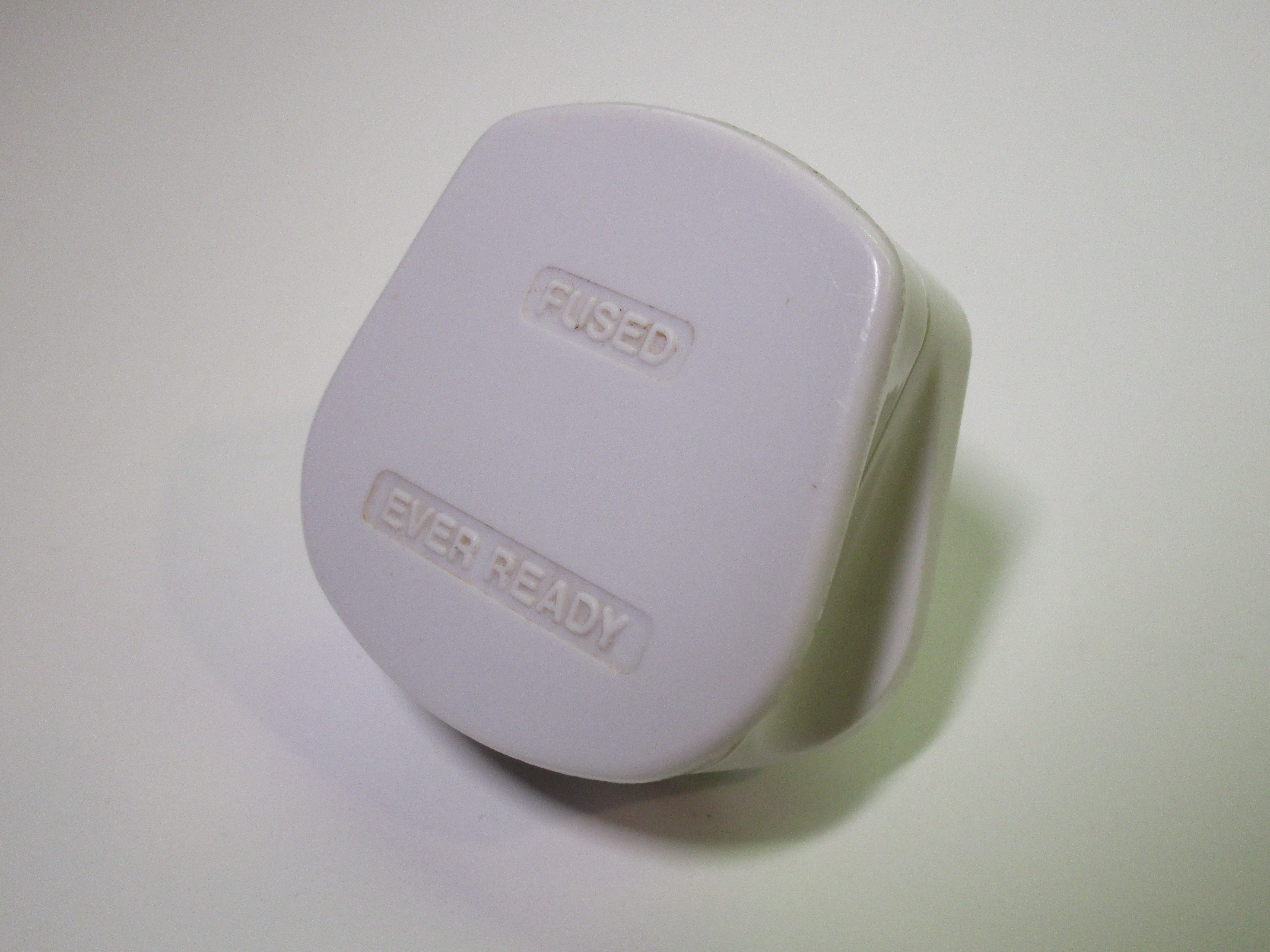 This is an example of an older BS1363 plug, from Ever Ready. It's quite similar to ones still available nowadays, however with a significant difference: the lack of sleeved pins. This safety feature was only made mandatory in the UK in 1984.
