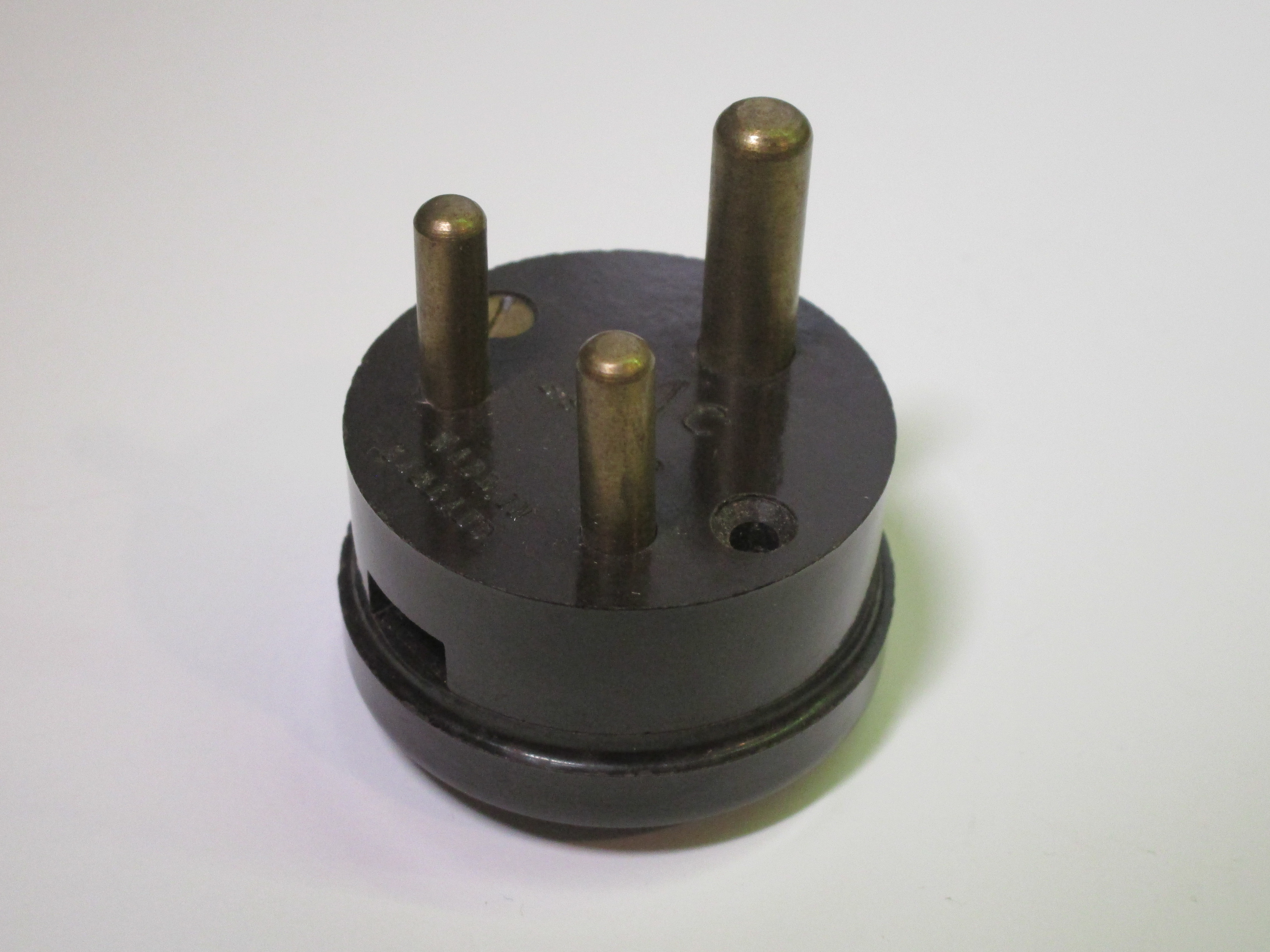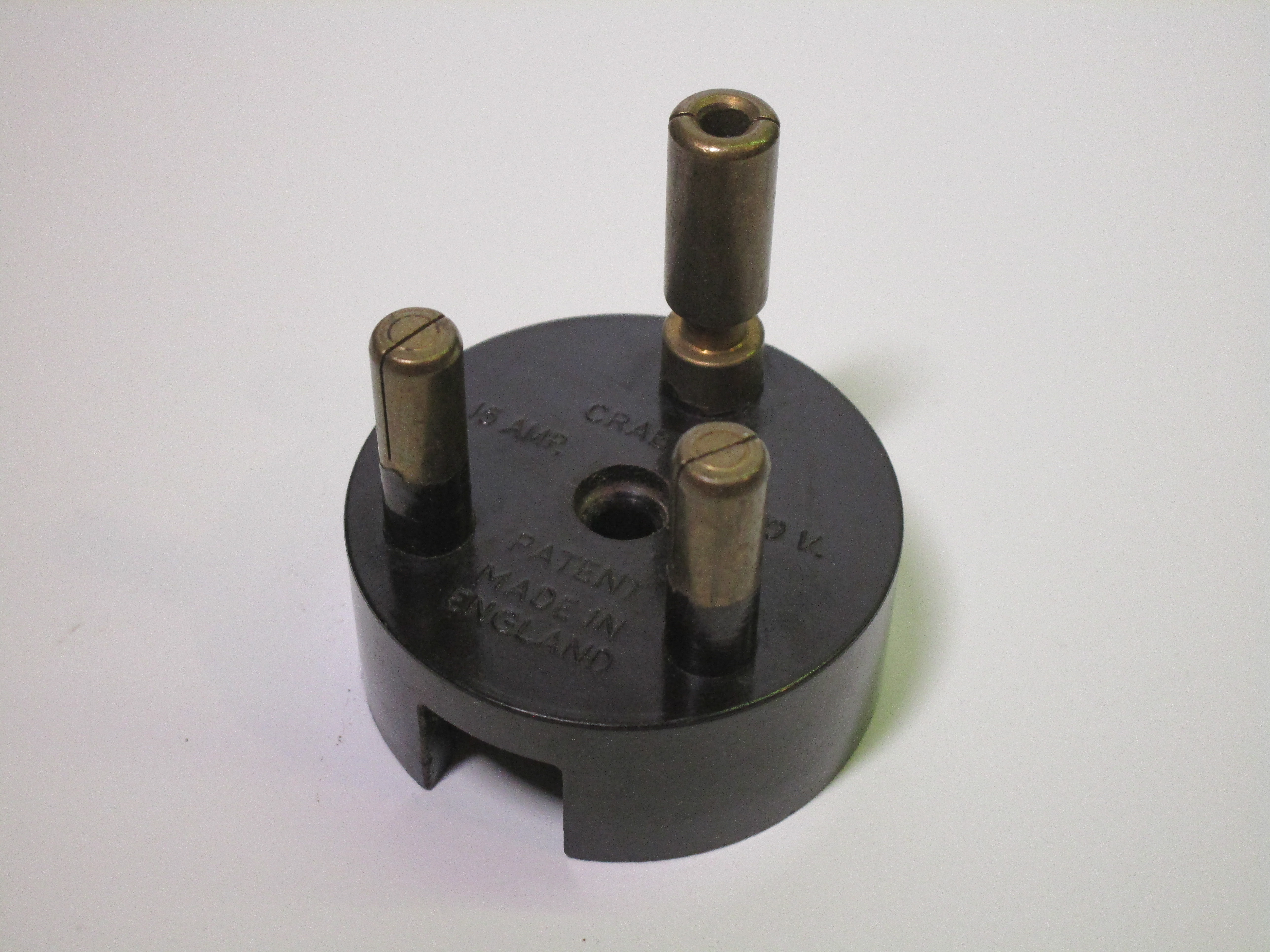Another noteworthy feature is the presence of an indent at the end of the earth pin; this would've been used with a special locking socket which likely required turning off a switch before the plug could be removed.