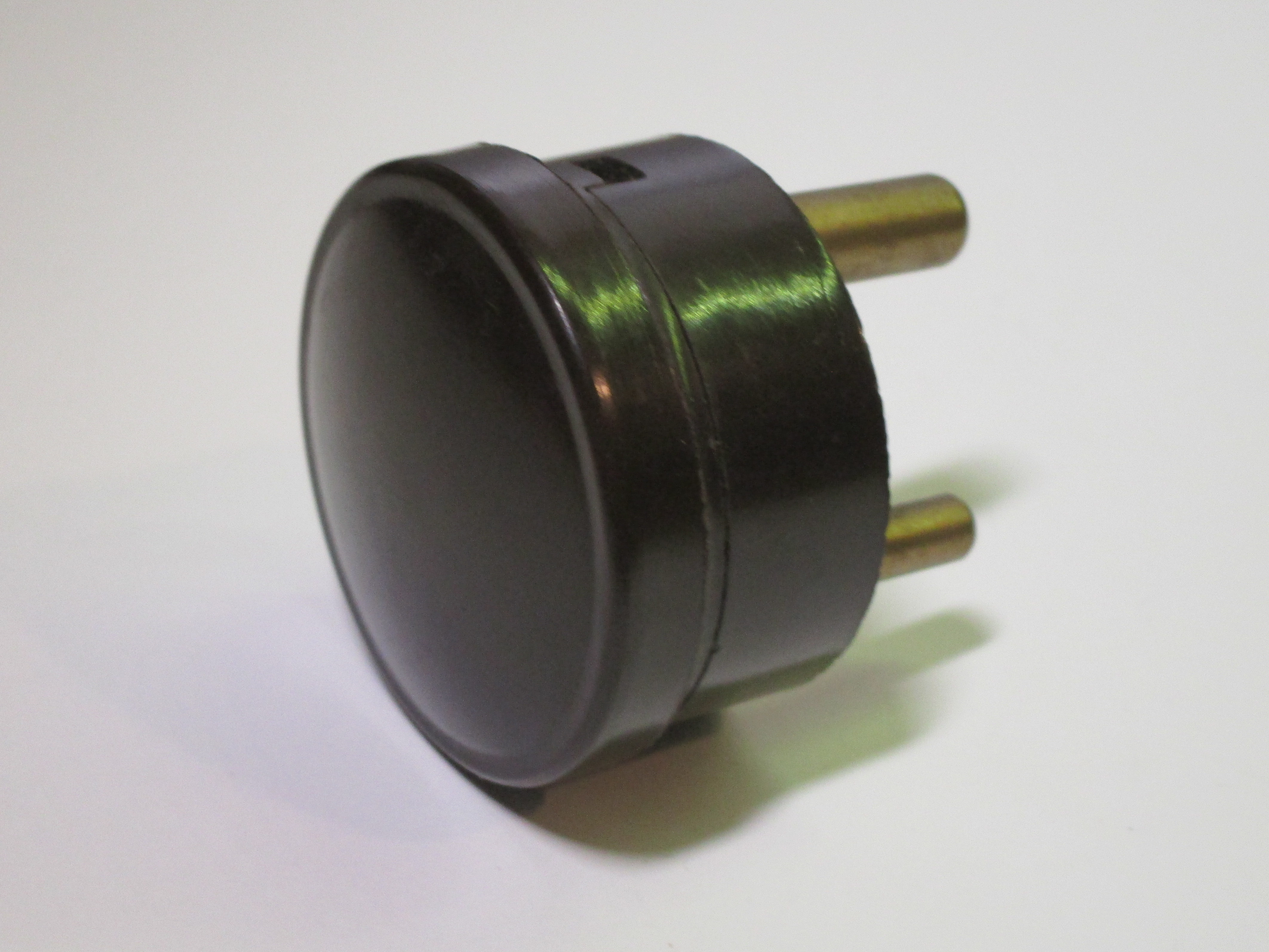 This is a more recent example of a rare 2A plug, manufactured by Lyvia in Hong Kong. These plugs have always had a limited use, as their limited rating would only make them suitable for table lamps or radios. That being said, they continue to be manufactured for special applications.