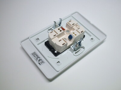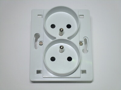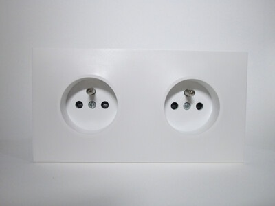 Like with Schuko sockets, dual outlets are also available for the French-style standard, allowing two of them to be used in a single-gang wall box. The tradeoff is that it has to protrude slightly further than a standard one, though not by much.
