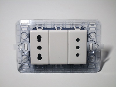 As with the plugs, Italian sockets are available in two sizes, 10A and 16A. These days the latter are most common and tend to be of the "Bipasso" type, which means they accept either size of plug. This wasn't the case originally, as the two plug sizes were initially meant for different power tariffs and thus purposefully incompatible. These older sockets are quite uncommon nowadays, but may still be found in older installations.