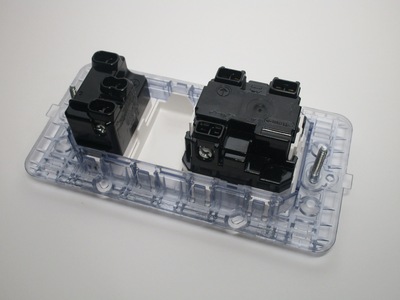 Italian sockets (and electrical accessories in general) are entirely modular, with different types of modules that can be connected together to form various combinations of layouts. This particular one is from BTicino as part of their Matix series.